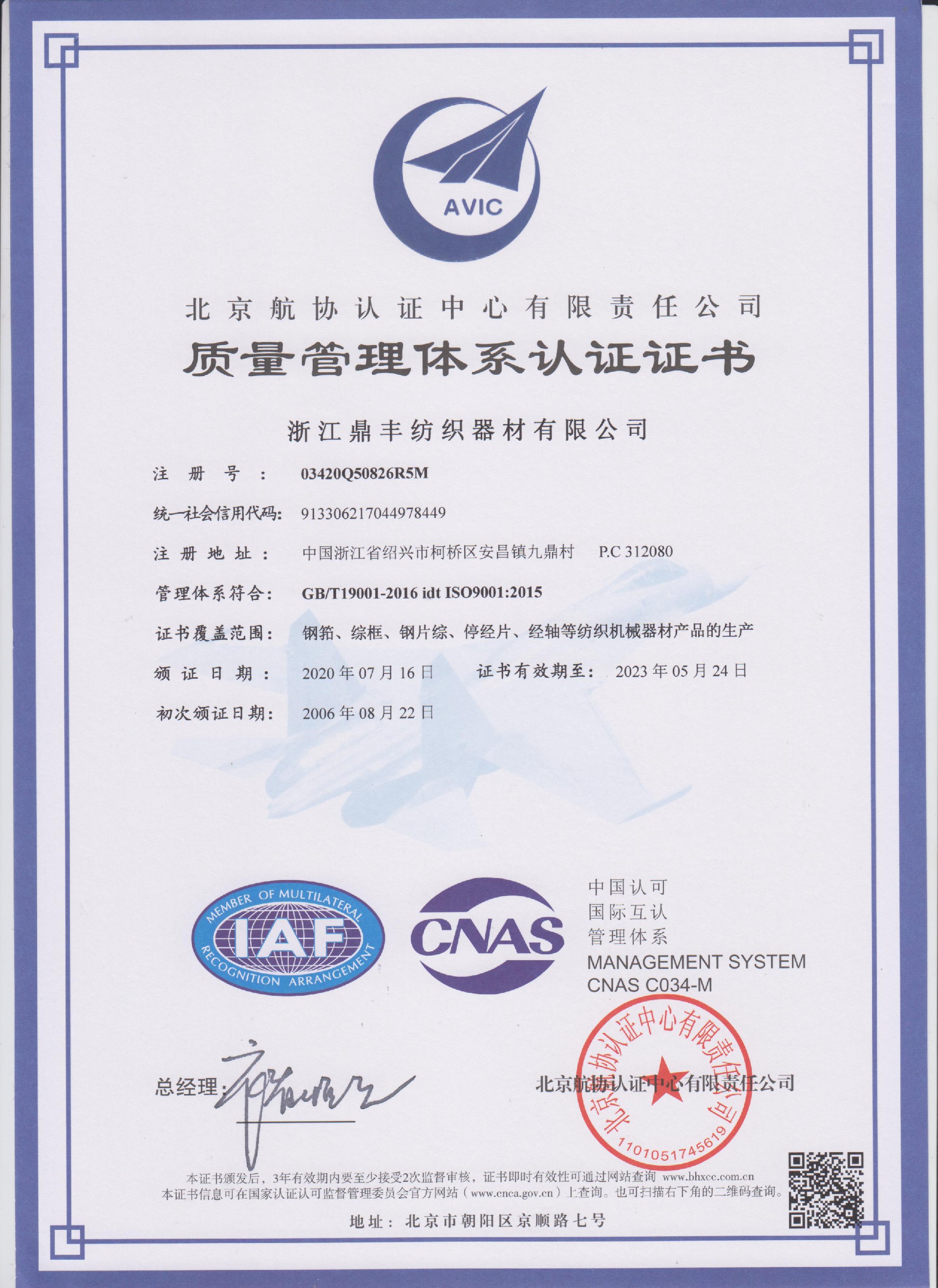 公司現有固定資產6000余萬元,員工300余人,現具有年產噴氣異型筘12萬米,劍桿筘32萬米,噴水筘5萬米,綜框20萬片,鋼片綜2億片,停經片1.5億片, 織軸1.2萬套的生產能力。公司“越泉”商標被評為“中國馳名商標”。公司通過ISO9001 :2015國際質量體系認證,ISO14001:2015國際環(huán)境管理體系認證,ISO45001:2018國際職業(yè)健康安全管理體系認證,噴氣織機用鋼筘和織機用鋁合金綜框獲得“浙江制造”品牌認證,公司擁有自營進出口權,產品暢銷全國并遠銷印度、巴基斯坦、土耳其、埃及、哥倫比亞、意大利等國家和地區(qū)。